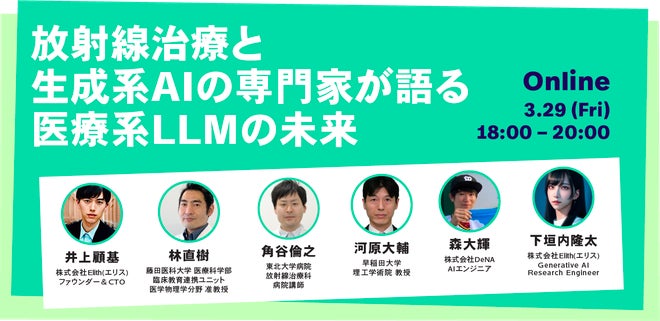 本イベントでは、大規模言語モデル(LLM)と放射線治療の分野に焦点を当て、医療とAIの領域で活躍する6人の専門家が登壇します。