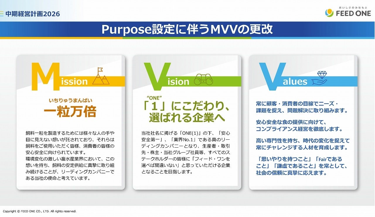 【フィード・ワン】経営理念の刷新および中期経営計画2026~1st STAGE for NEXT 10 YEARS~策定に関するお知らせ