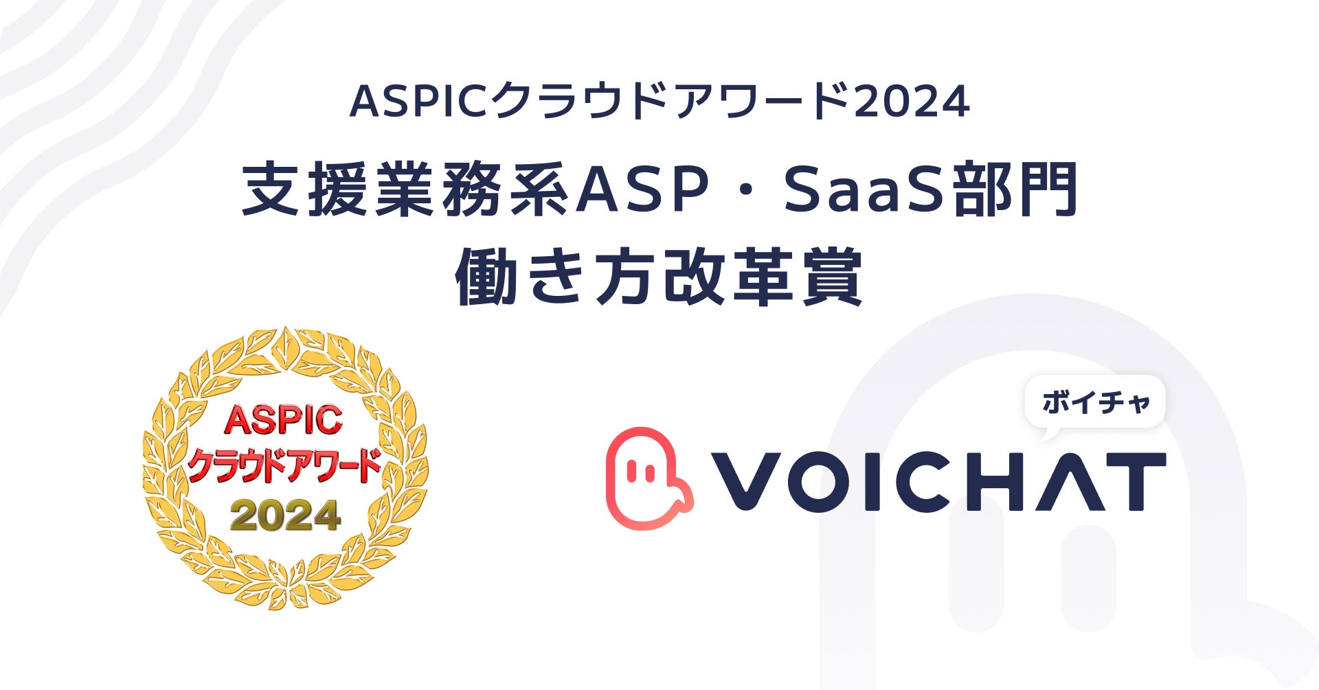 音声プラットフォーム『VOICHAT』、「ASPICクラウドアワード2024」支援業務系ASP・SaaS部門にて働き方改革賞を受賞