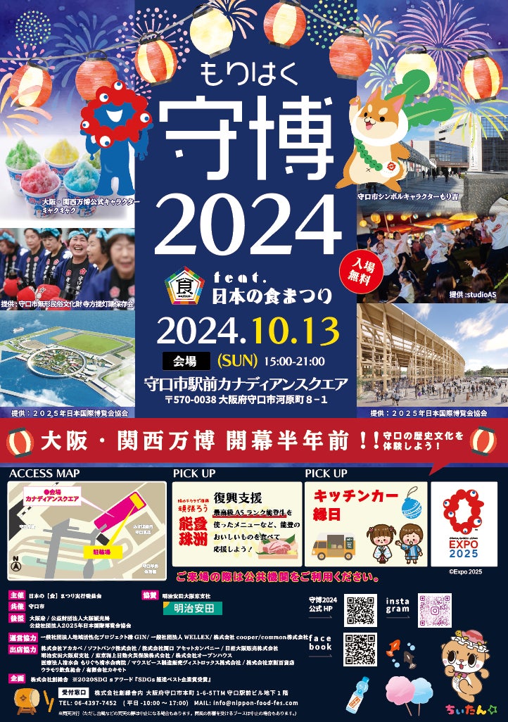 この度、日本の食まつり実行委員会(実行委員長:枦山義彦)は、守口市と連携し、2024年10月13日(日)に守口市駅前カナディアンスクエアにて「守博2024 feat. 日本の食まつり」を開催いたします。