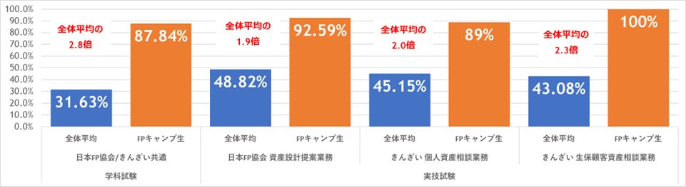 FP1級学科試験に占めるFPキャンプ受講生割合は32%、合格率は全体の4.6倍の78%/FP2級試験の合格率は学科試験・実技試験ともに約9割