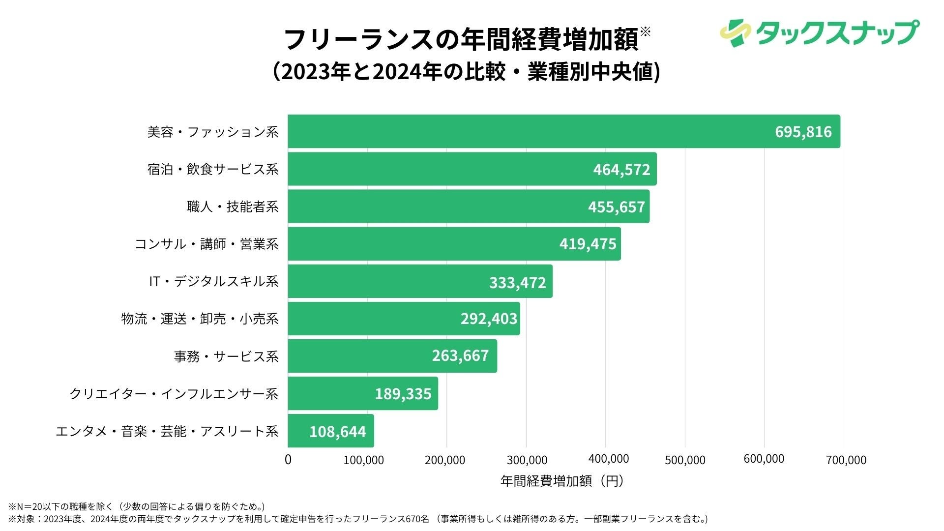 分析対象:2023年度、2024年度の両年度でタックスナップを利用して確定申告を行ったフリーランス※ 670名