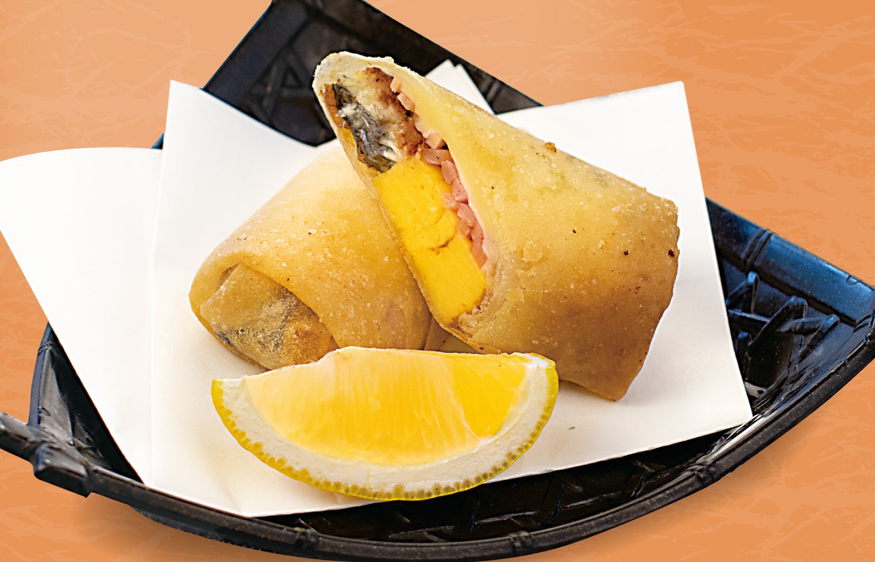 鰻とチーズを巻いた春巻きです。外はパリッと、中はとろけるチーズとうなぎのハーモニーが楽しめる逸品です。