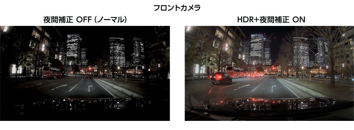 前後2カメラ搭載のドライブレコーダーは前方、後方ともにフルハイビジョンで撮影! 細部までくっきりとした映像で記録します。