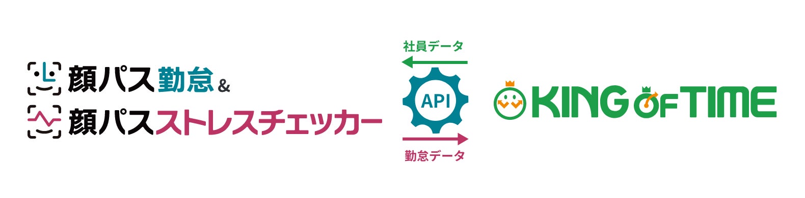 この度、TIGEREYE社が提供する「顔パス勤怠&顔パスストレスチェッカー」と、クラウド勤怠管理「KING OF TIME」がAPI連携することにより、両サービスの導入企業・ユーザー様は、デバイスを選ばずに、リアルタイムで簡単な顔認証による出勤・退勤の打刻と、従業員の健康管理の両立を実現致します。