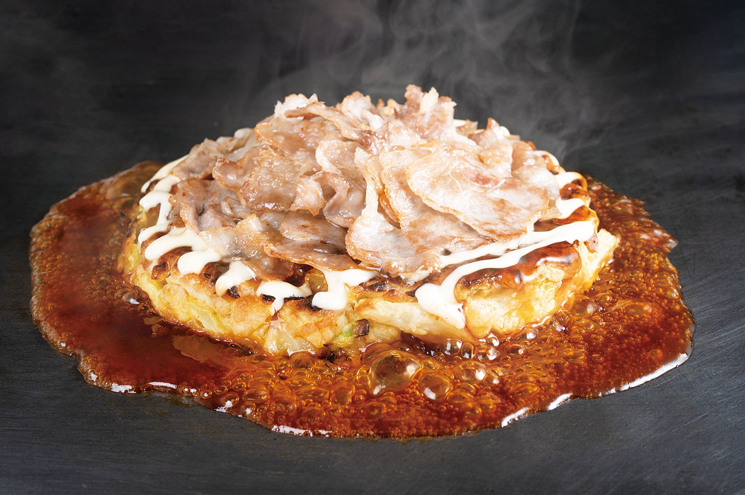 北海道産カマンベールチーズを豪快にまるごと1個包んで焼きあげた自慢のお好み焼き。