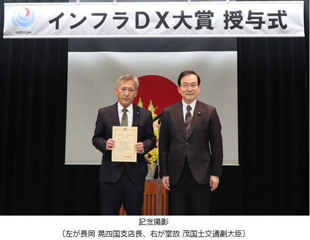 「インフラDX大賞」は、国土交通省がインフラ分野において、データとデジタル技術を活用し、建設生産プロセスの高度化・効率化、国民サービスの向上等につながる優れた実績を「ベストプラクティス」として授与されるものです。