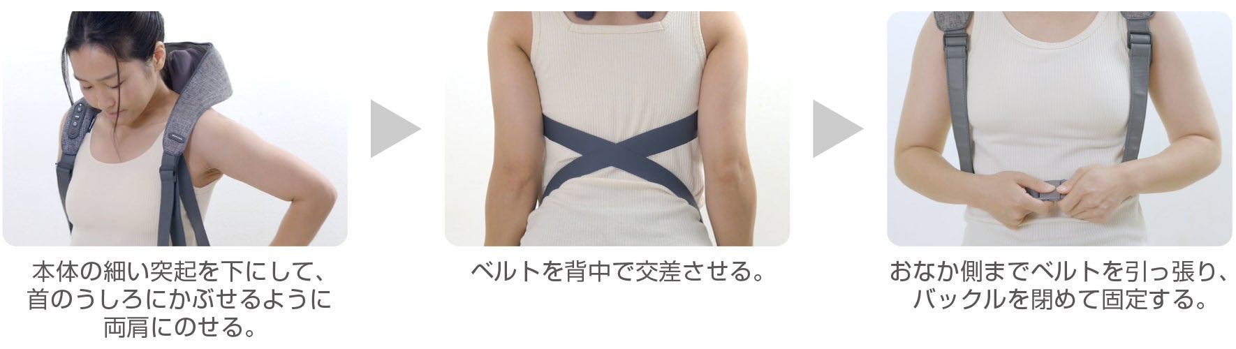 1. もみ⽟の加圧と温熱により⾸回りをマッサージ