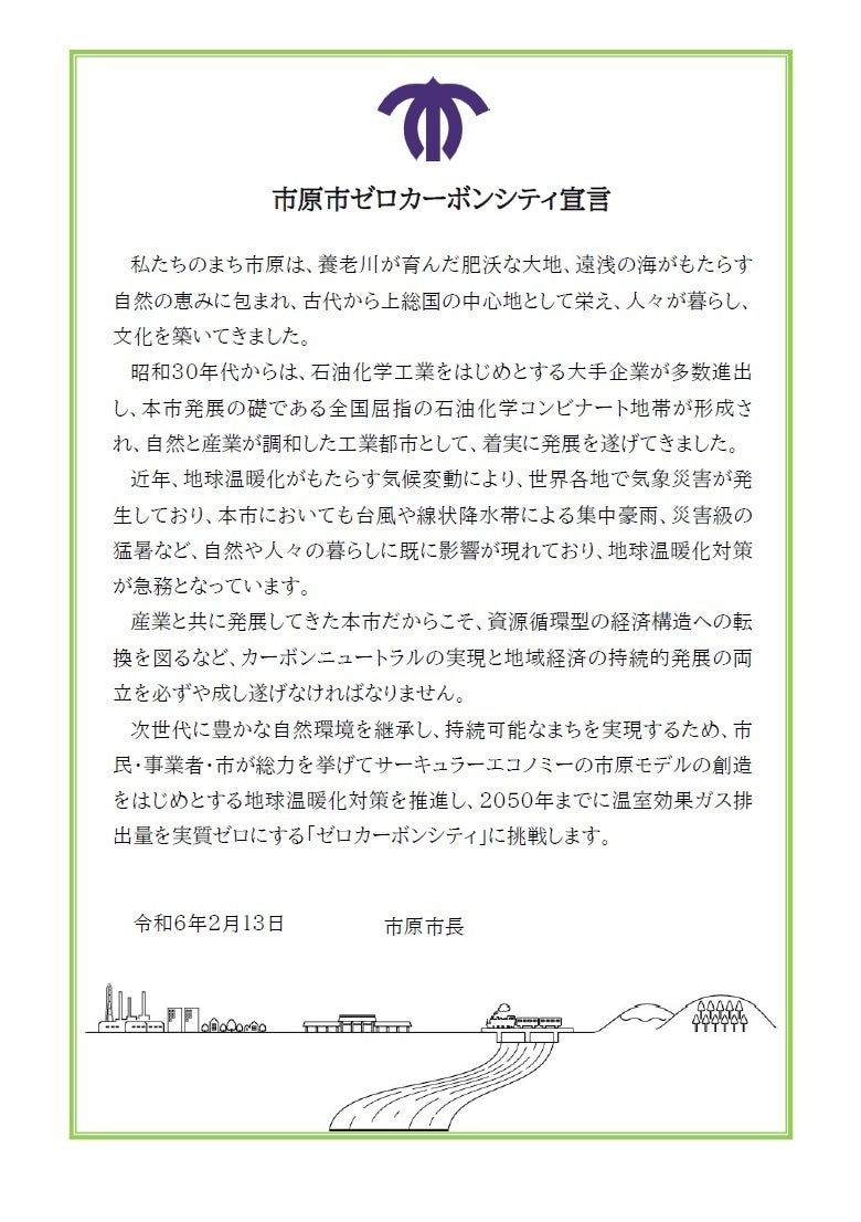 「ゼロカーボンシティ宣言」を表明=千葉県市原市