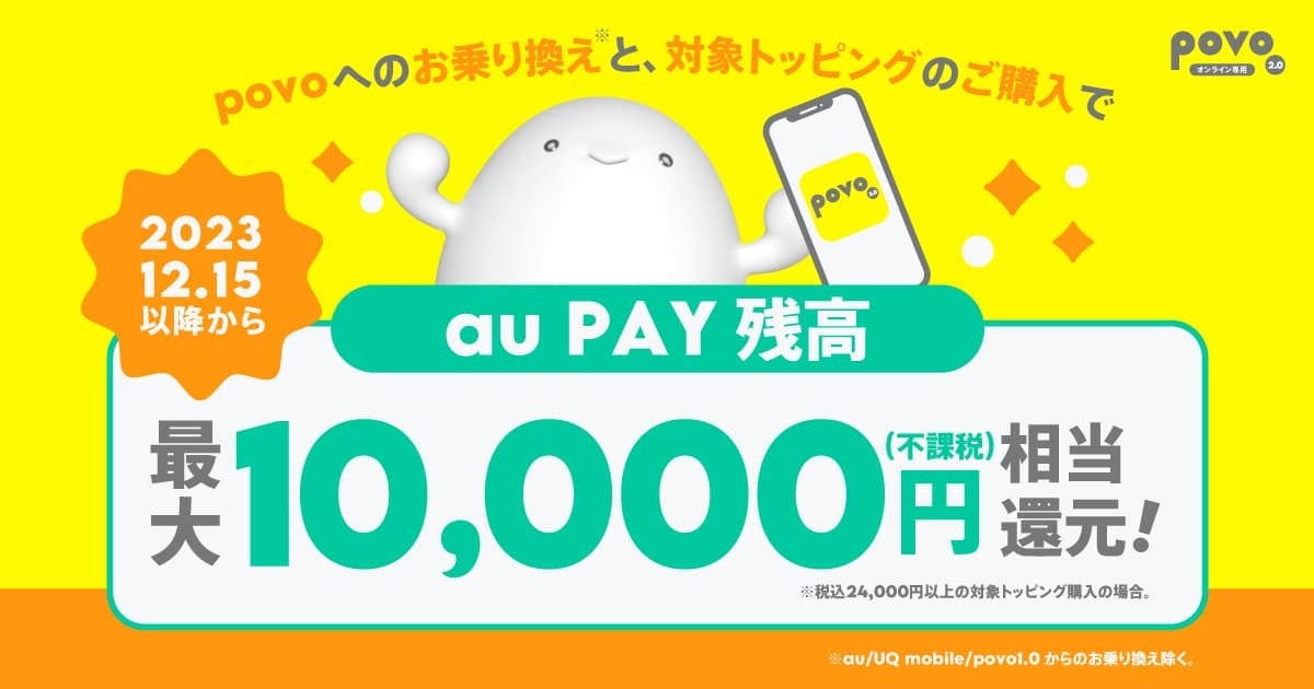 キャンペーンの詳細はこちら( https://povo.jp/mnp_aupay_cpn_2023_12/ )