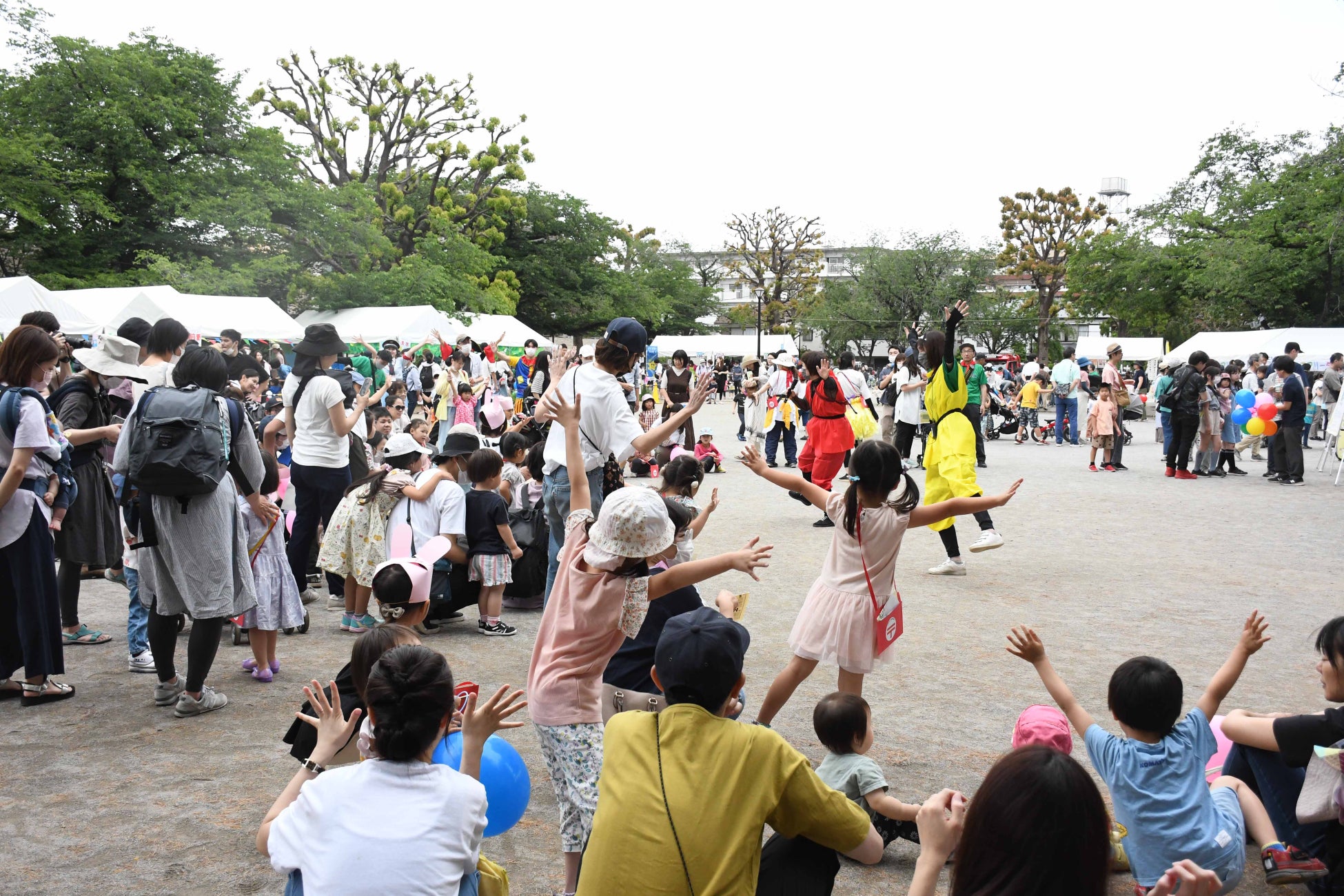 ・手遊びやダンスを一緒に楽しむ「わくわくミニステージ」(平和公園)