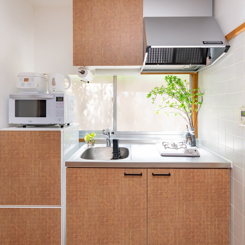 壁だけではなく、収納棚や冷蔵庫など家具・家電のDIYに適したマステのような壁紙があります。下地が濃色の場合の対処法や、美しく仕上がるカットのコツを「激古・激狭の民泊を大変身!【壁紙施工のコツ】前編」でご紹介しています。