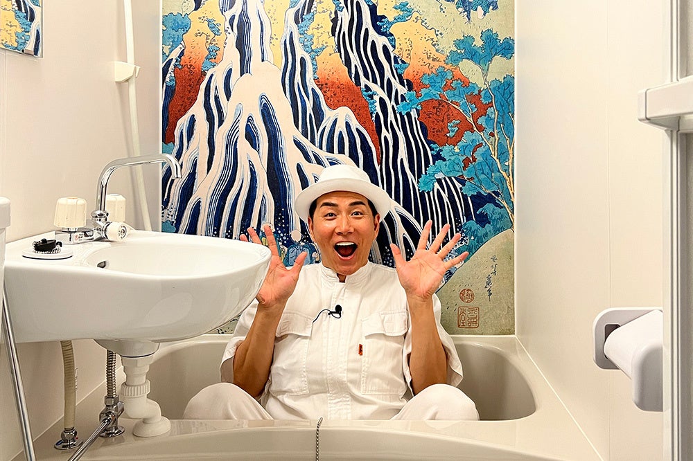 常に水がかかる場所にも貼れる壁紙があるので、浴室までアレンジOK!フリー素材から、コジマジックさんの好きな絵画を選んでいただきました。公開を目前に控える4本目の動画で、施工の様子をご紹介しています。