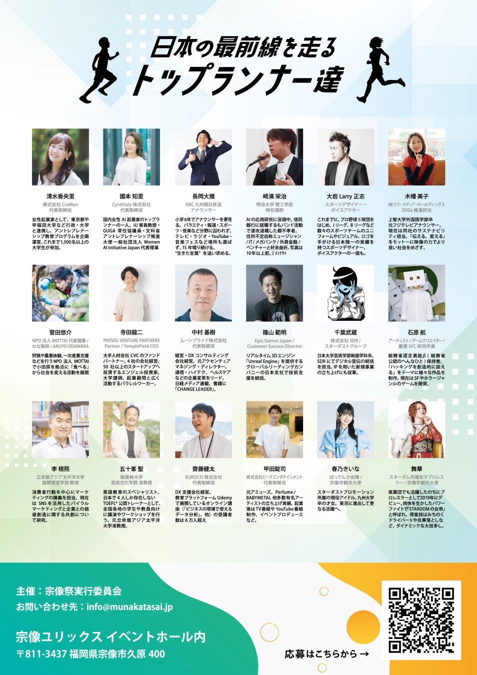 今回は宗像フェスの特別企画として、テクノロジー/エンタメ/環境・まちづくり/グローバルなど、