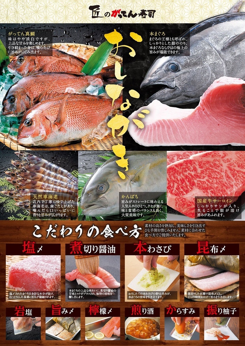 匠のがってん寿司:https://www.rdcgroup.co.jp/gattenbrand/takumi/menu/
