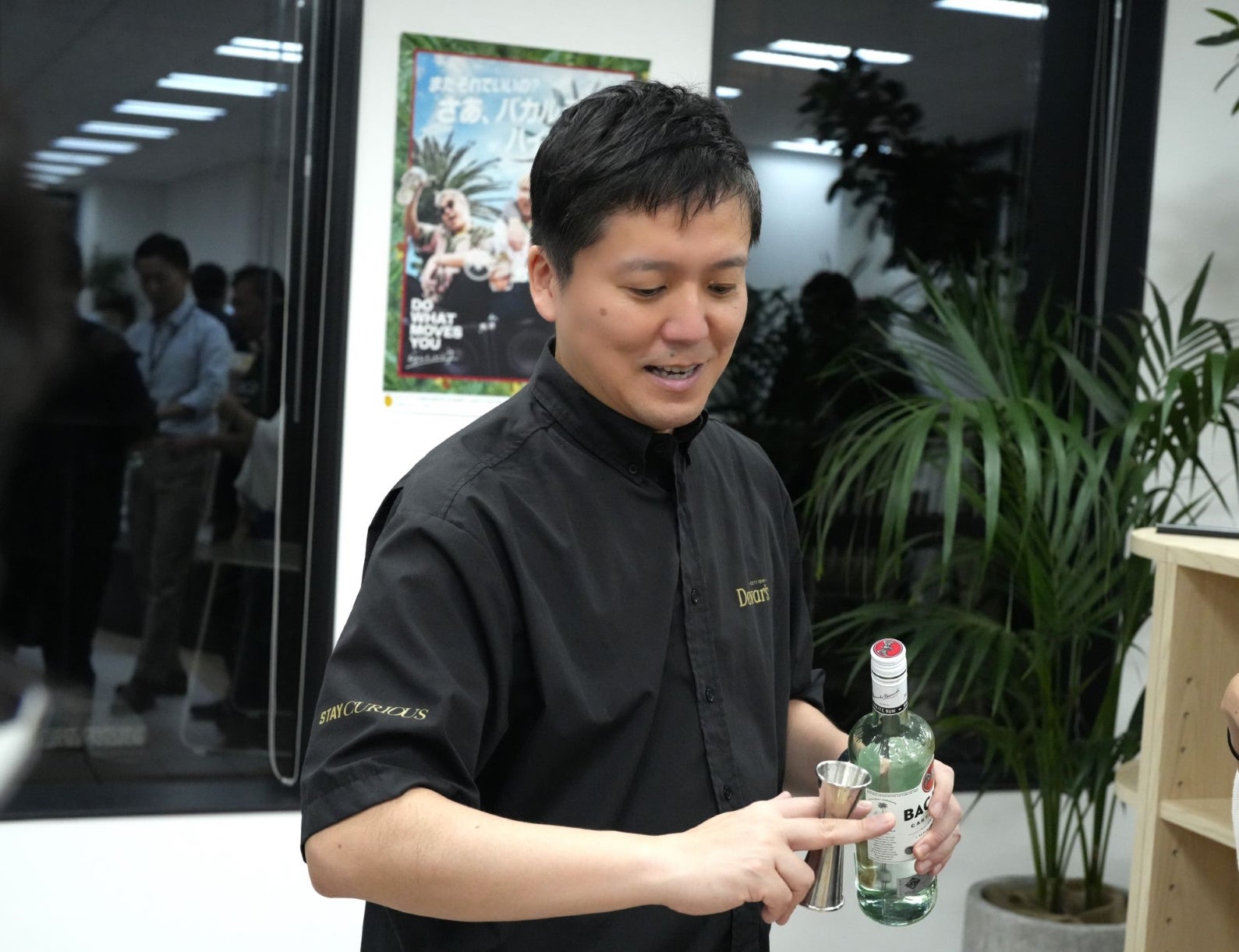 ゴウリカ社とバカルディジャパンは長年のパートナーとしてお付き合いさせていただいております。担当者以外の社員の方はバカルディのお酒を楽しむ機会があまり無く、本社以外の勤務地の方も含めてコミュニケーションを深める機会を積極的に探しているとお聞きして、出張バー「職BAR」を共同で実施させていただきました。これがゴウリカ皆さま同士のコミュニケーションの活性化の一助となり、またゴウリカの皆さまのバカルディのお酒やブランドへの理解により両社のパートナーシップも深まったと信じております。