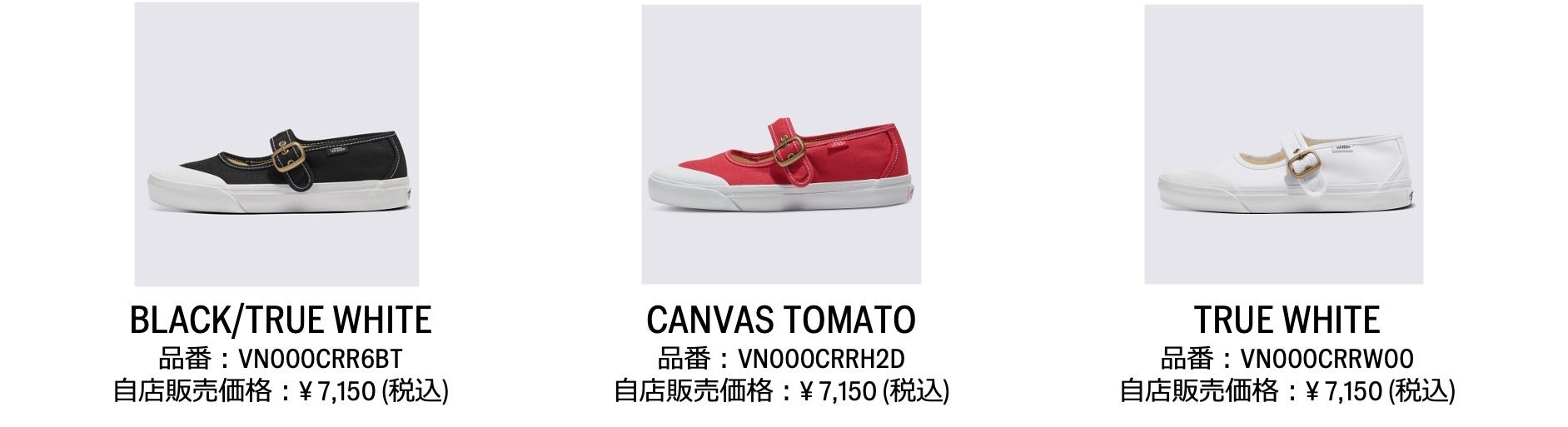 「MARY JANE」 は、 VANS公式オンラインストア、VANS STORE各店、ABC-MARTをはじめとする全国のVANS正規取扱店で販売中です。