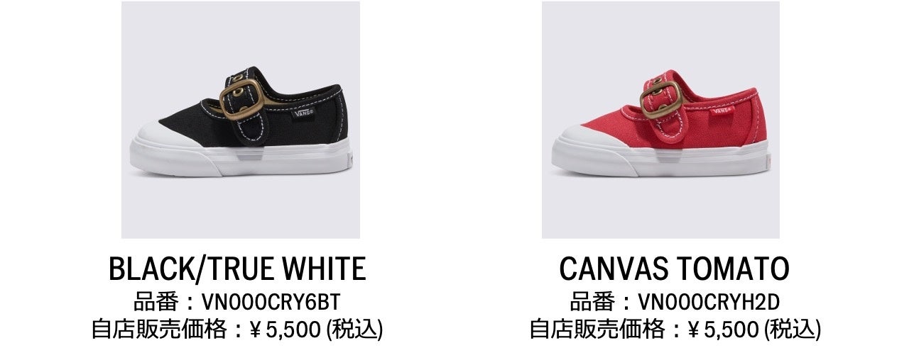 アッパーに丈夫なキャンバスを採用し、ラバーのトーキャップが耐久性を高めながらカジュアルな印象をプラスしています。バックル部分の裏側にゴムをつけることでスムーズな着脱を実現し、ラバーワッフルアウトソールでVANSらしさも感じさせる「MARY JANE」は、ガーリーな雰囲気からカジュアルなスタイルまで、さまざまなスタイリングにマッチします。今回のモデルからキッズサイズも新たにラインアップし、親子でリンクコーデもお楽しみいただけます。