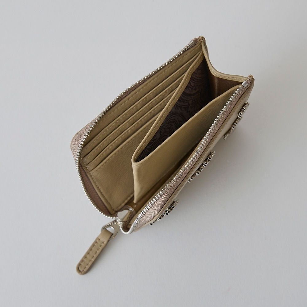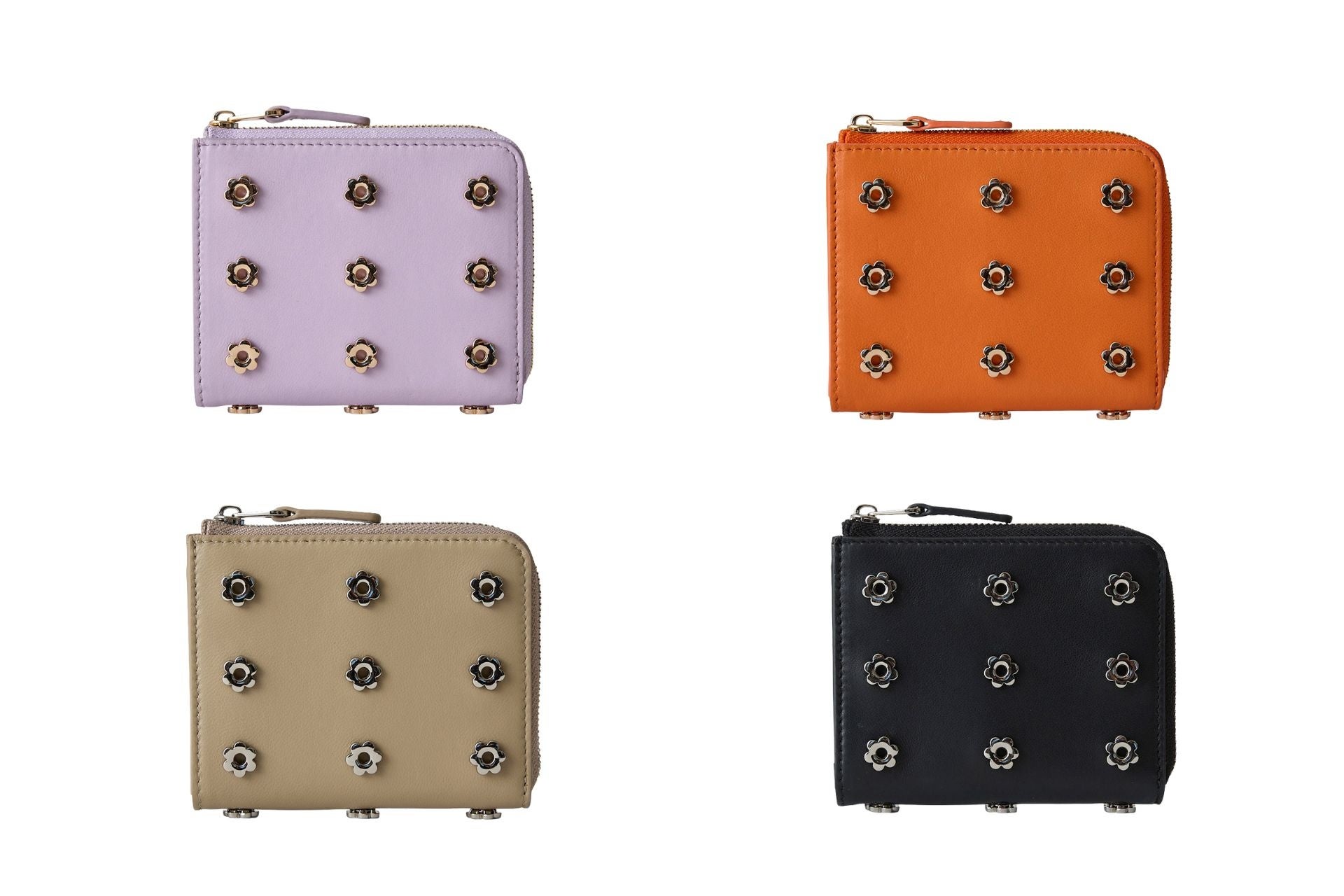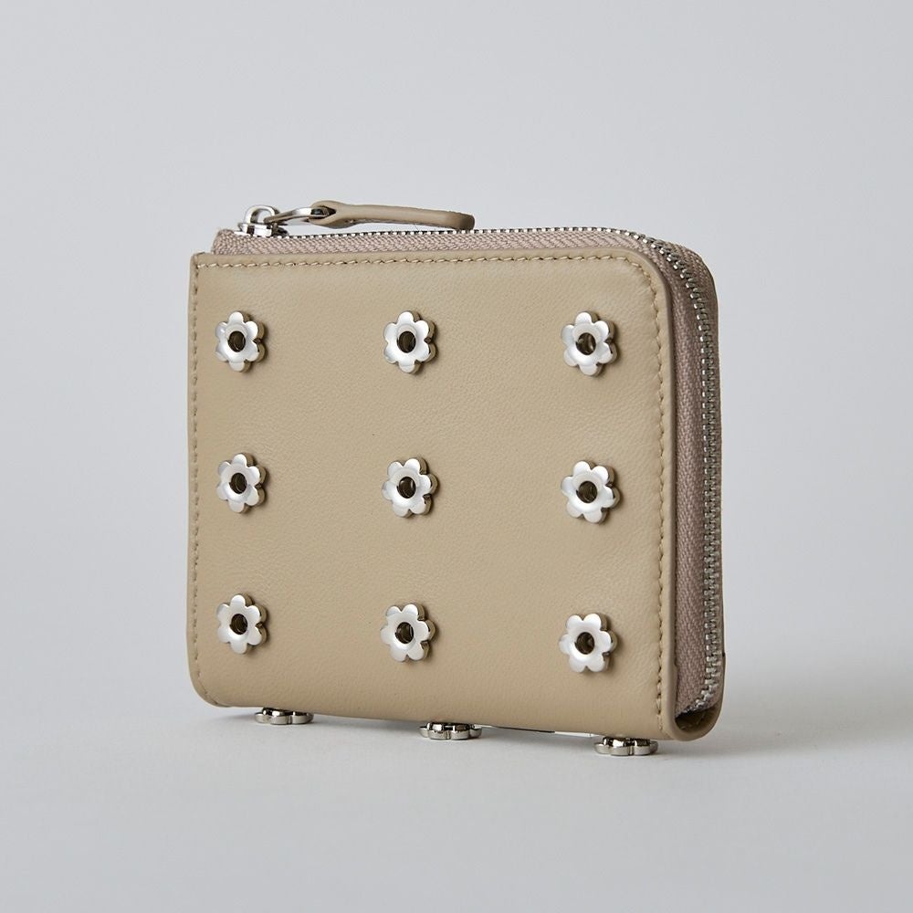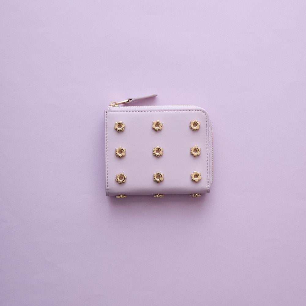 花型のハトメ金具がアクセントになった、薄型の二つ折りウォレット。