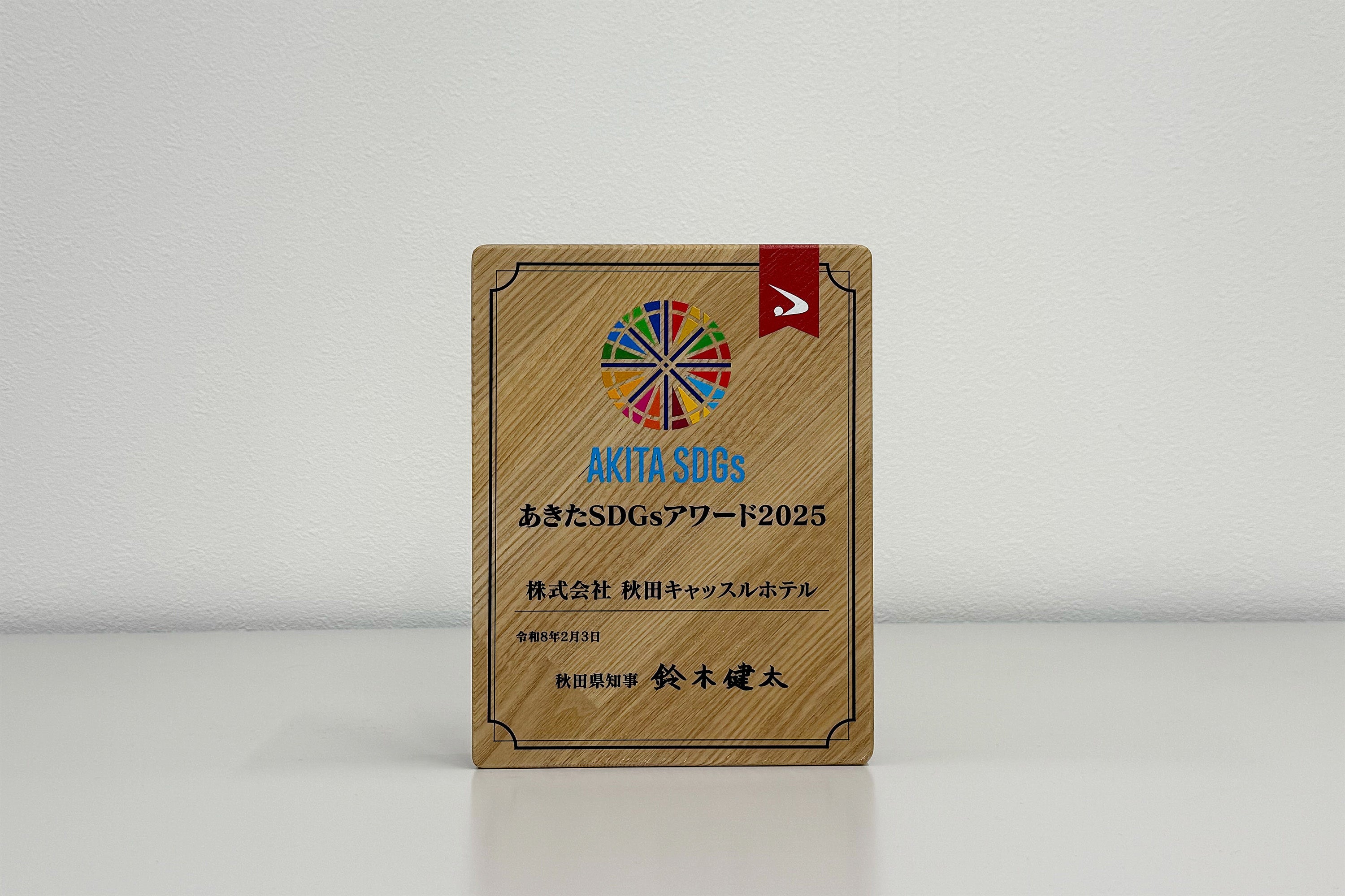 秋田キャッスルホテル(所在地:秋田県秋田市中通、代表取締役社長:岸本洋喜)は、このたび、秋田県が主催する「あきたSDGsアワード2025」を受賞しました。表彰式は2026年2月3日に開催され、総支配人の西村一英が秋田県知事より表彰状を授与されました。