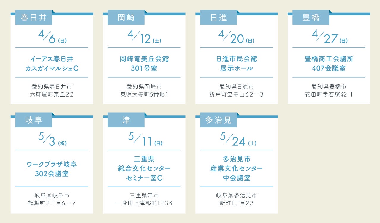 株式会社マツモト(本部:愛知県春日井市/代表取締役社長:松本勝)は、4月6日(日)の地元・愛知県春日井市「イーアス春日井」を皮切りに愛知・岐阜・三重の7会場で開催される試着体験会「くるピタキャラバン隊」(予約制・無料)を始めます。