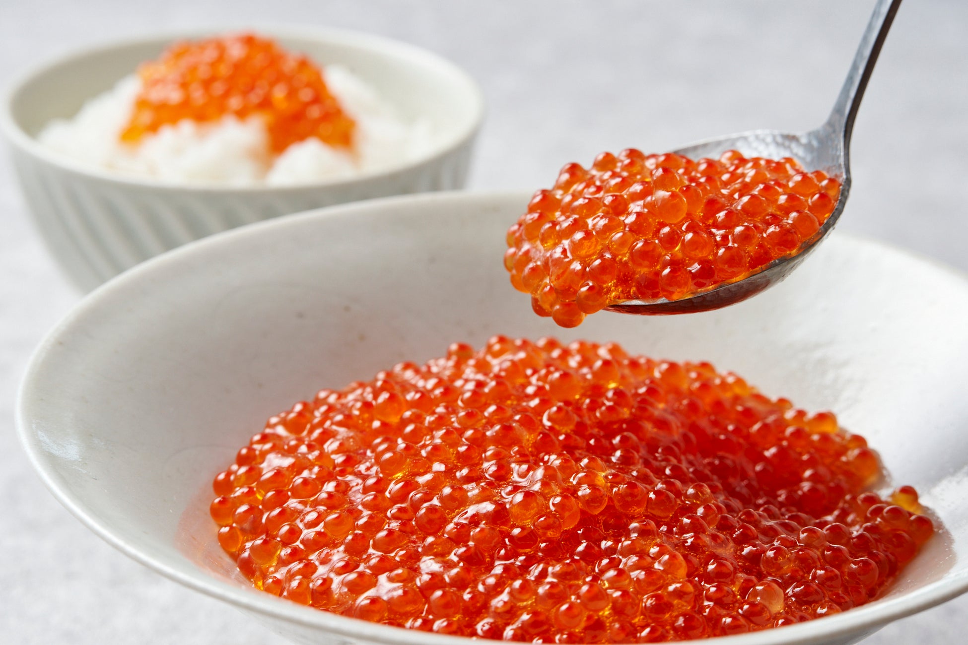Musholmのデンマーク養殖場で大切に育てられたサーモンの卵は、小粒でありながらコクがあり、色鮮やかなオレンジ色です。活けじめしたサーモンから、獲れたてのいくらを一気に凍結するため、高鮮度のまま日本に届けられます。