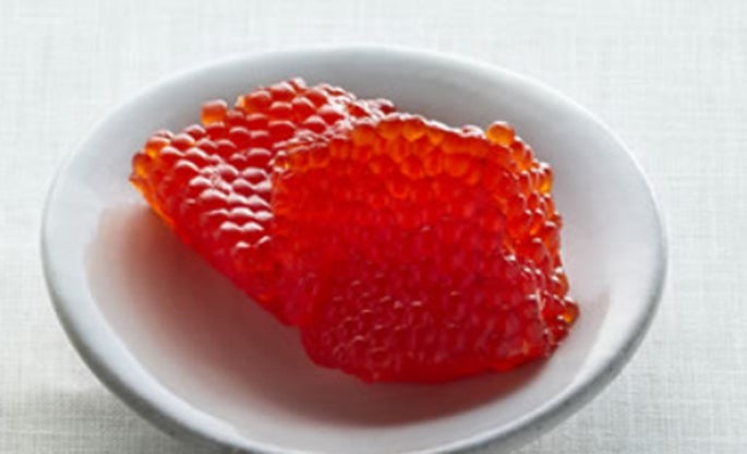 厳選したトラウト子を使用。色目がきれいで、魚卵の風味が抑えられクセがなく、濃厚な味わいを楽しめます。しょうゆ・かつおぶし・昆布だしを合わせ、じっくりと熟成させた、こだわりの筋子です。