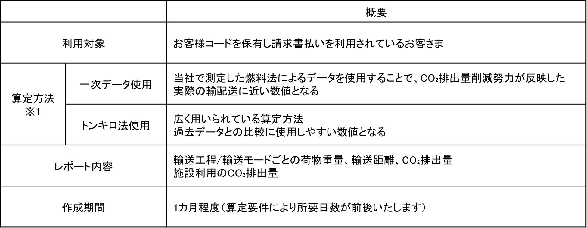 本サービスは、お客様コードを基にお預かりから配達までの輸配送に係るCO₂排出量を算定するもので、荷物1個単位でレポートの提供が可能です。算定結果は、CO₂排出量の現状把握に加え、公開情報や公的機関への提出書類にも活用できるレポート内容となっています。