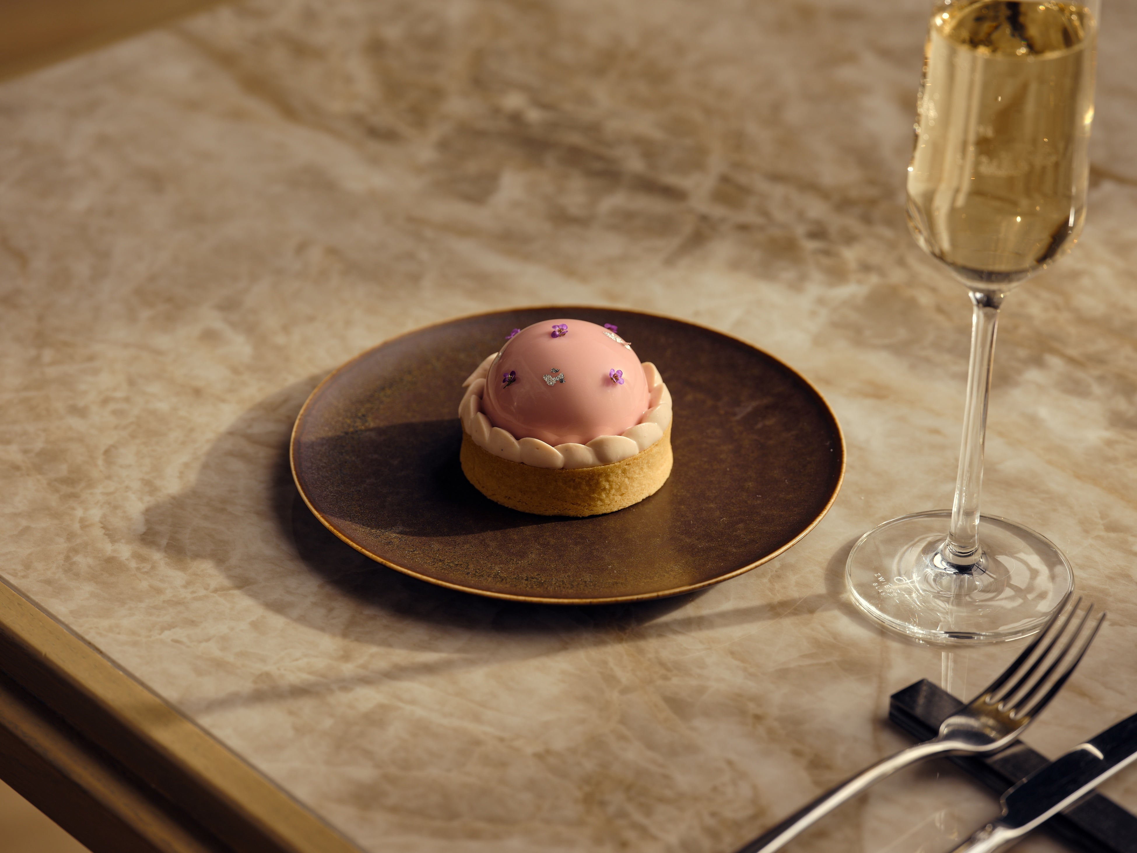 スイーツは、春の花々を描いたアートピースのような品々が並びます。「桜とルビーチョコレートムース」は、クレームブリュレとチェリーのジュレを、上品な桜の香りが広がるルビーチョコレートのムースで優しく包み込み、サクサクのシュクレに重ねた一品で、華やかな春の余韻がふわりと口いっぱいに広がります。「ラベンダーとホワイトチョコレートのタルト」は、ビーツでピンクに色付けしたサクサクのタルトに、フローラルな香りとハーブらしい清涼感を合わせ持つラベンダーのチョコレートクランチを敷き詰め、甘いホワイトチョコレートムースと合わせました。心躍るビジュアルと、繊細な味わいが印象的です。