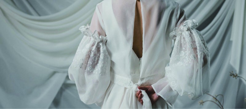 繊細な生地をウエディングドレスとして再利用をし地球にも優しく、