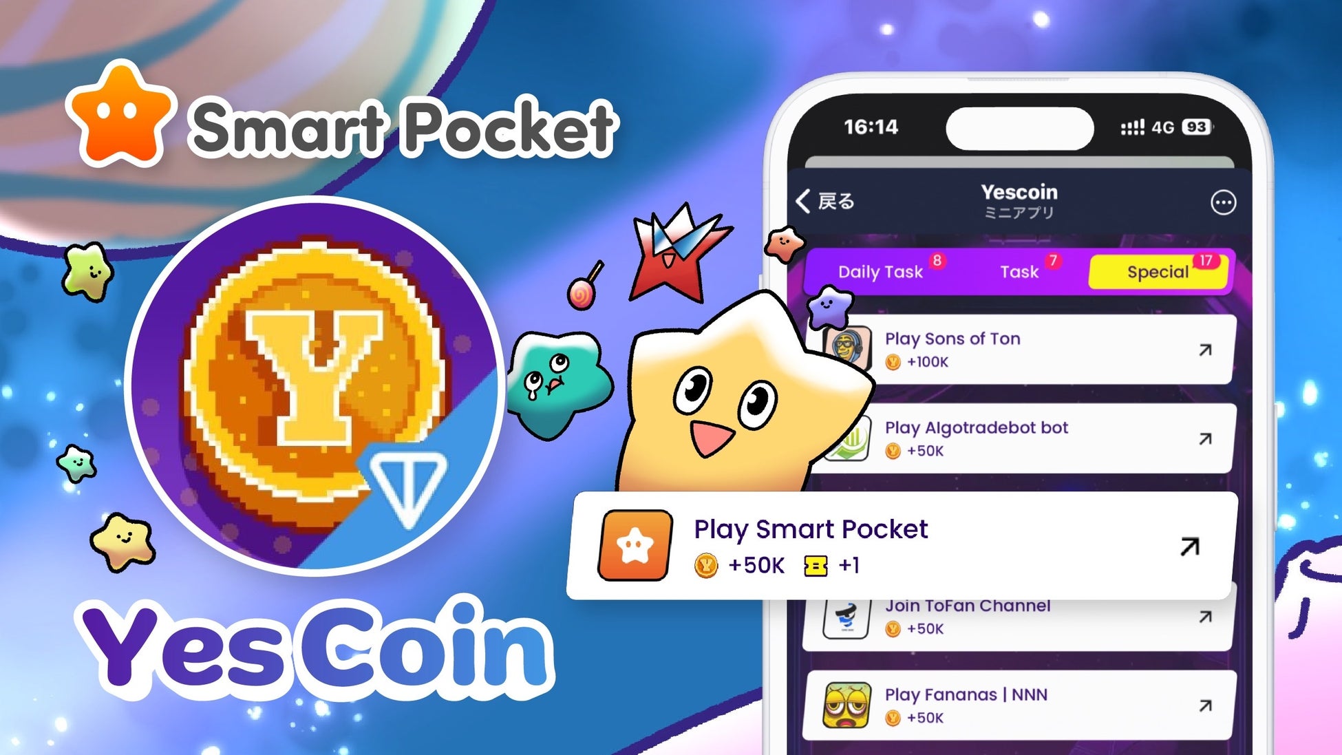 月間アクティブユーザー数が1000万人を超えるYescoinとのコラボレーションも実施中です。Yescoin(イエスコイン)は、Telegram上でプレイできる世界中で大人気のweb3ゲームです。