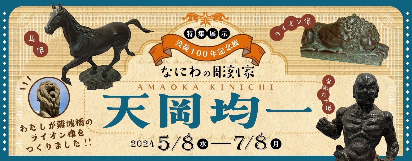 令和6年(2024)5月8日(水)から7月8日(月)まで、8階特集展示室において特集展示「―わたしが難波橋のライオン像をつくりました!!―なにわの彫刻家・天岡均一没後100年記念展」を開催します。