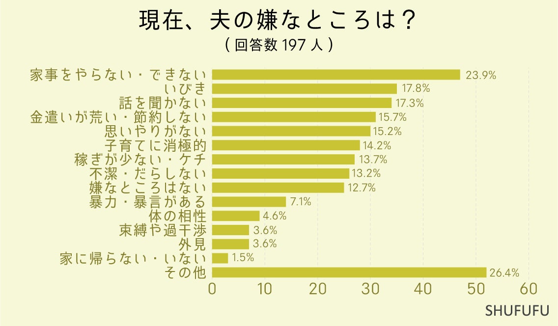 株式会社しんげんが運営する主婦向けの情報メディア「SHUFUFU」は、「夫の嫌なところ」に関するアンケート調査を実施しました。その結果を公表します。