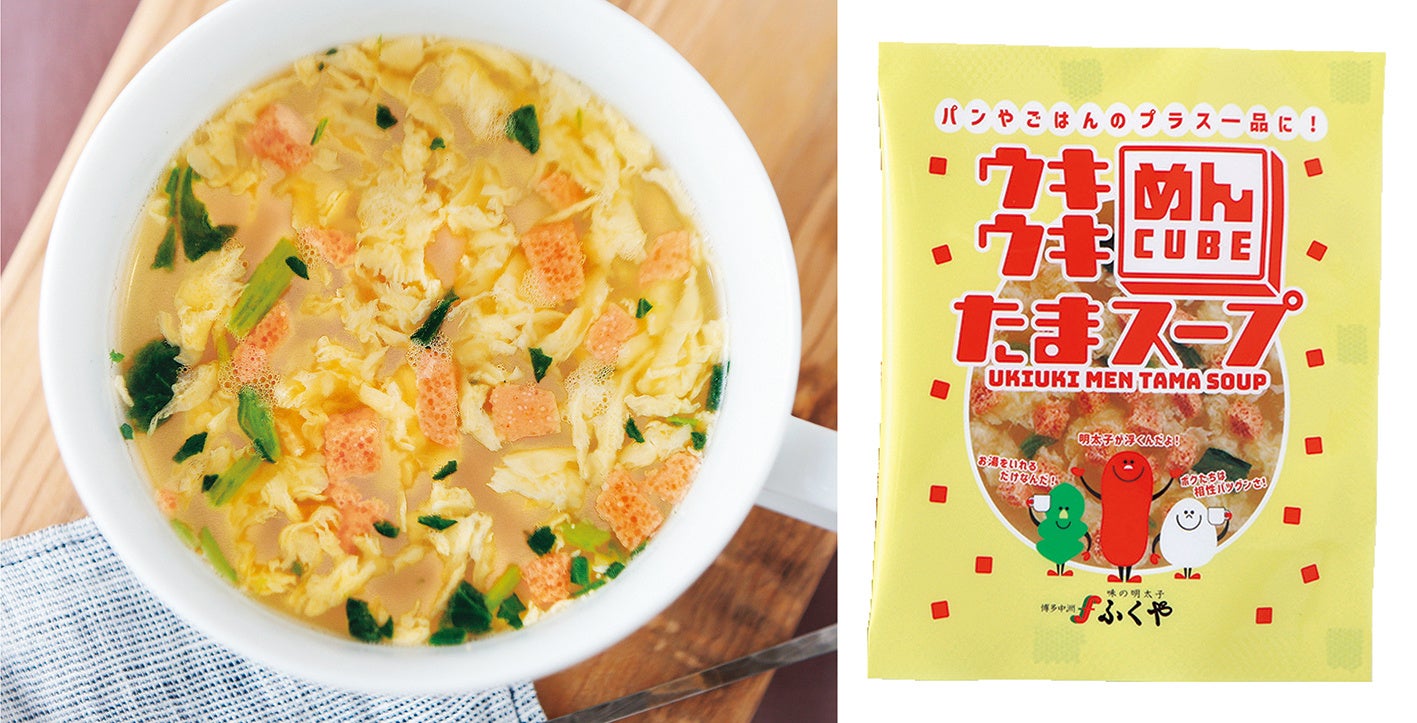 味の明太子ふくやは、今年3月に発売して以来話題となっている「ウキウキめんたまスープ」に続き、明太子をフリーズドライ加工した“めんCUBE”を使用した新感覚のレトルトスープ「ウキウキめん