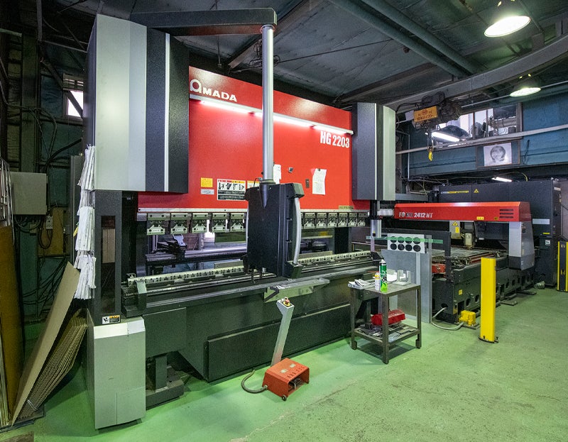 設備だけでなく、仕上がりの緻密さも同社の大きな特徴です。一枚の金属の板を、曲げる、プレスする、レーザーによって裁断・加工する、溶接するといった、あらゆる金属加工において高い技術を保有しています。