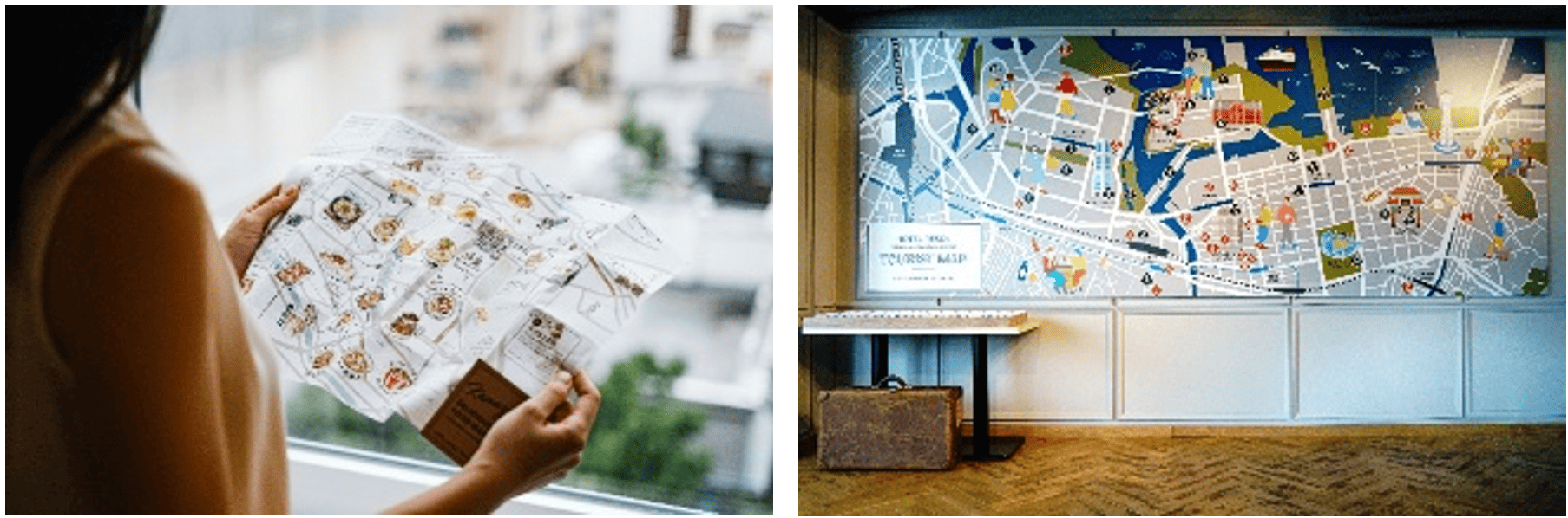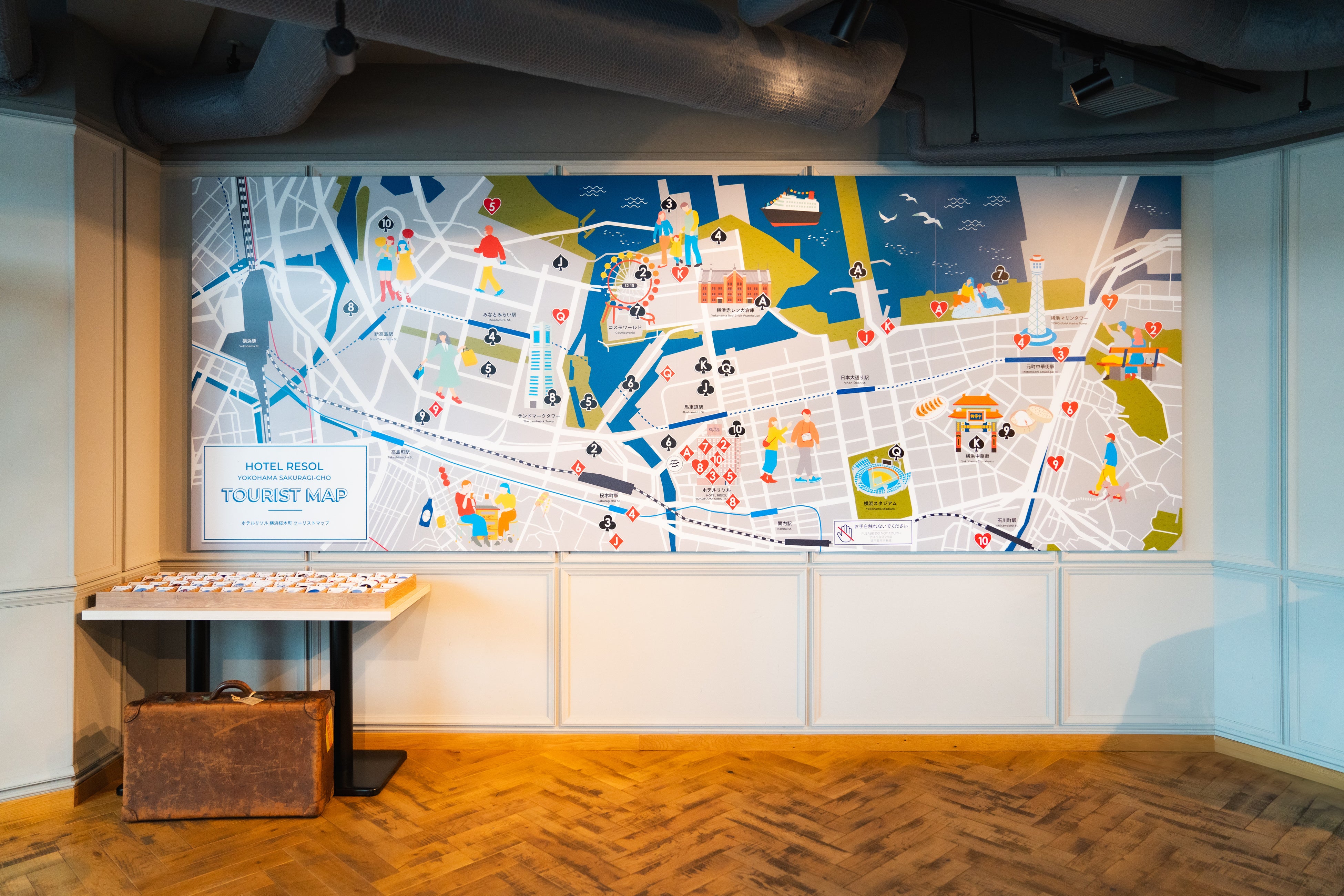 2024年5月、リビングロビーに、大型のオリジナル周遊マップ「TOURIST MAP」を設置。専任スタッフが厳選した52か所を紹介した横浜の街の魅力に寄り添った企画。