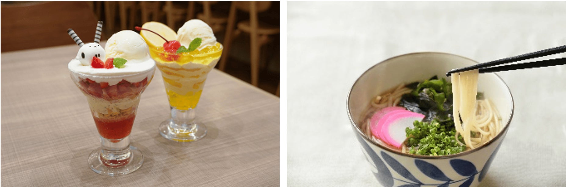 宿泊者の方へ、夜食として札幌名物「〆パフェ」を提供。