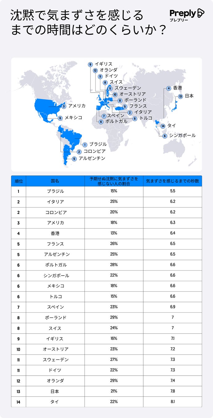 英会話個人レッスンや、韓国語個人レッスンを提供し、語学学習を通じて人々のキャリアアップを支援するオンライン語学学習プラットフォーム Preply(プレプリー)は、世界各国で「沈黙」についてどう感じるのか調査を行いました。