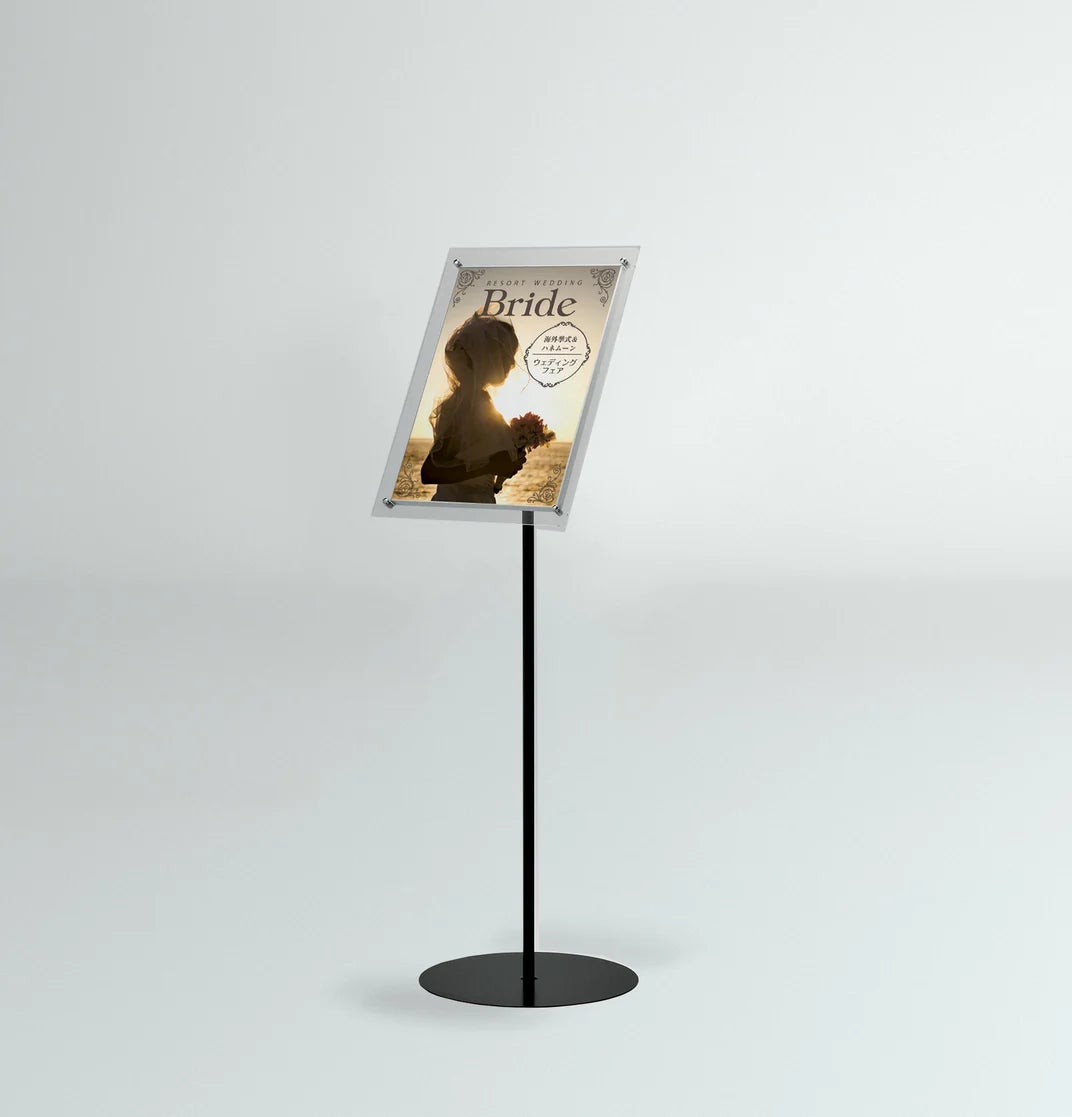 スタンド(パネル別売)は、広告パネルや案内表示を簡単に設置できる便利なディスプレイツールです。パネルのデザインやサイズを自由に選択できるため、店舗やイベント、展示会など広い用途でご利用いただけます。