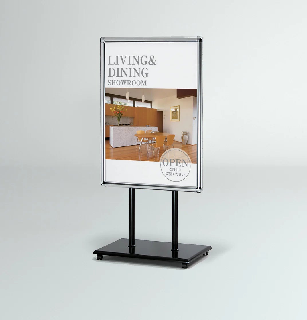 頑丈なベース構造で、パネルやサインをしっかりと固定。風や振動にも強い設計です。