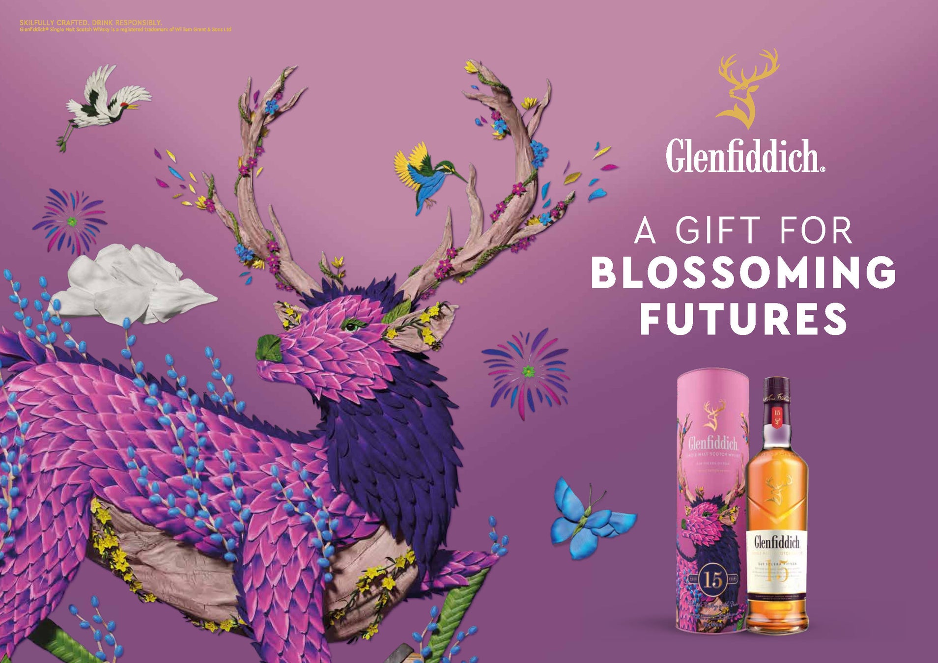 井上羅来氏は「私の想いは、皆様をグレンフィディックが生まれる雄大な自然の旅へと誘うこと。グレンフィディックのアイコンである鹿のデザインは花びら一枚一枚を重ねながら、全て自然の素材を使い、手作業で丁寧に作りました。それは、この卓越したウイスキーを育んできた、時を超えて受け継がれる職人技と共鳴するものです。」と語っています。