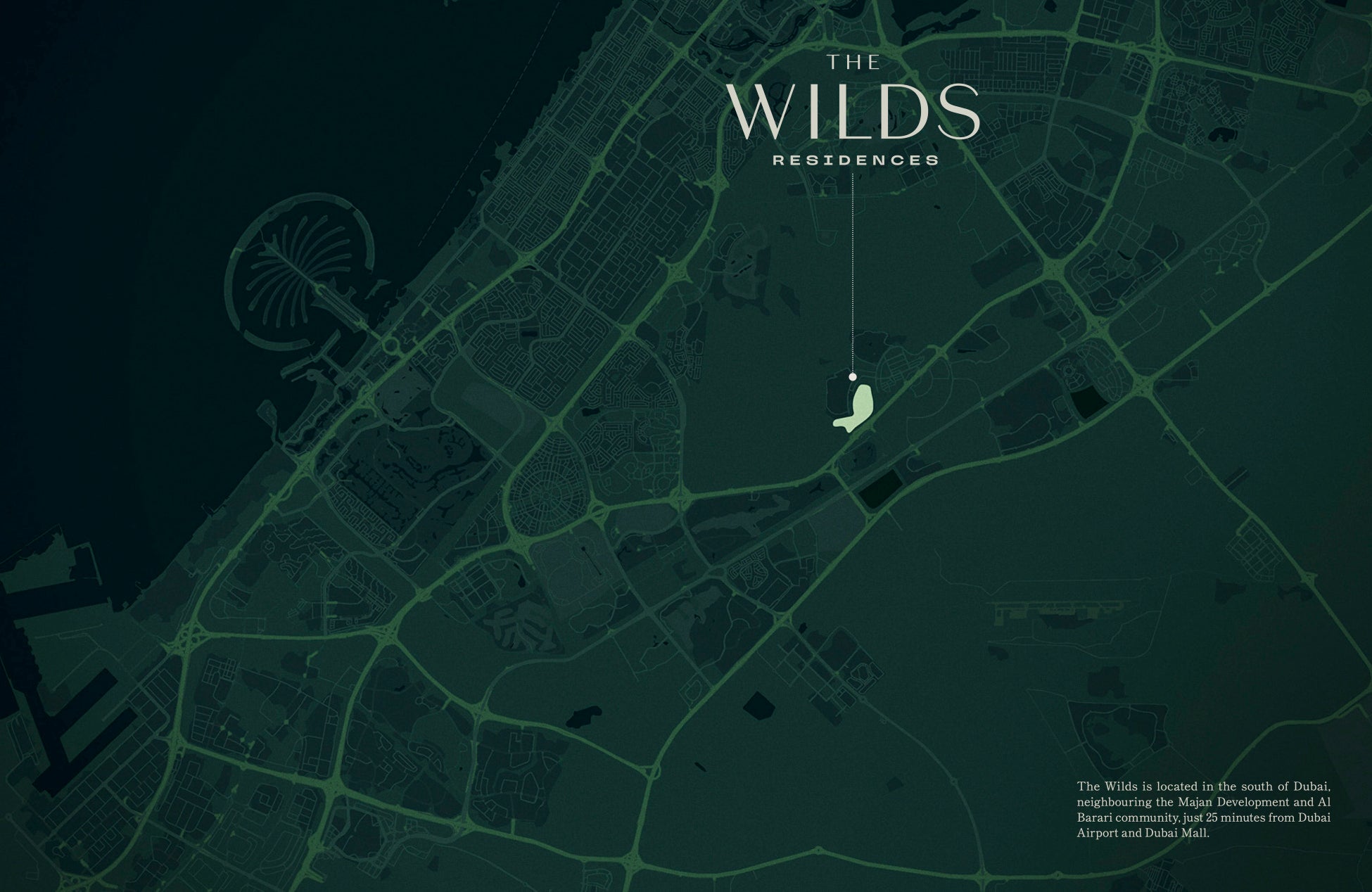 The Wilds Residencesは、ドバイ西部の住宅開発エリア Dubailand(ドバイランド)に位置しています。