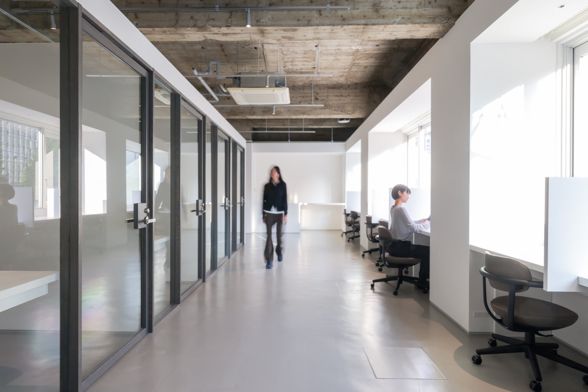 フロア全体には大きな窓があり、明るく開放感のある設計が特徴です。