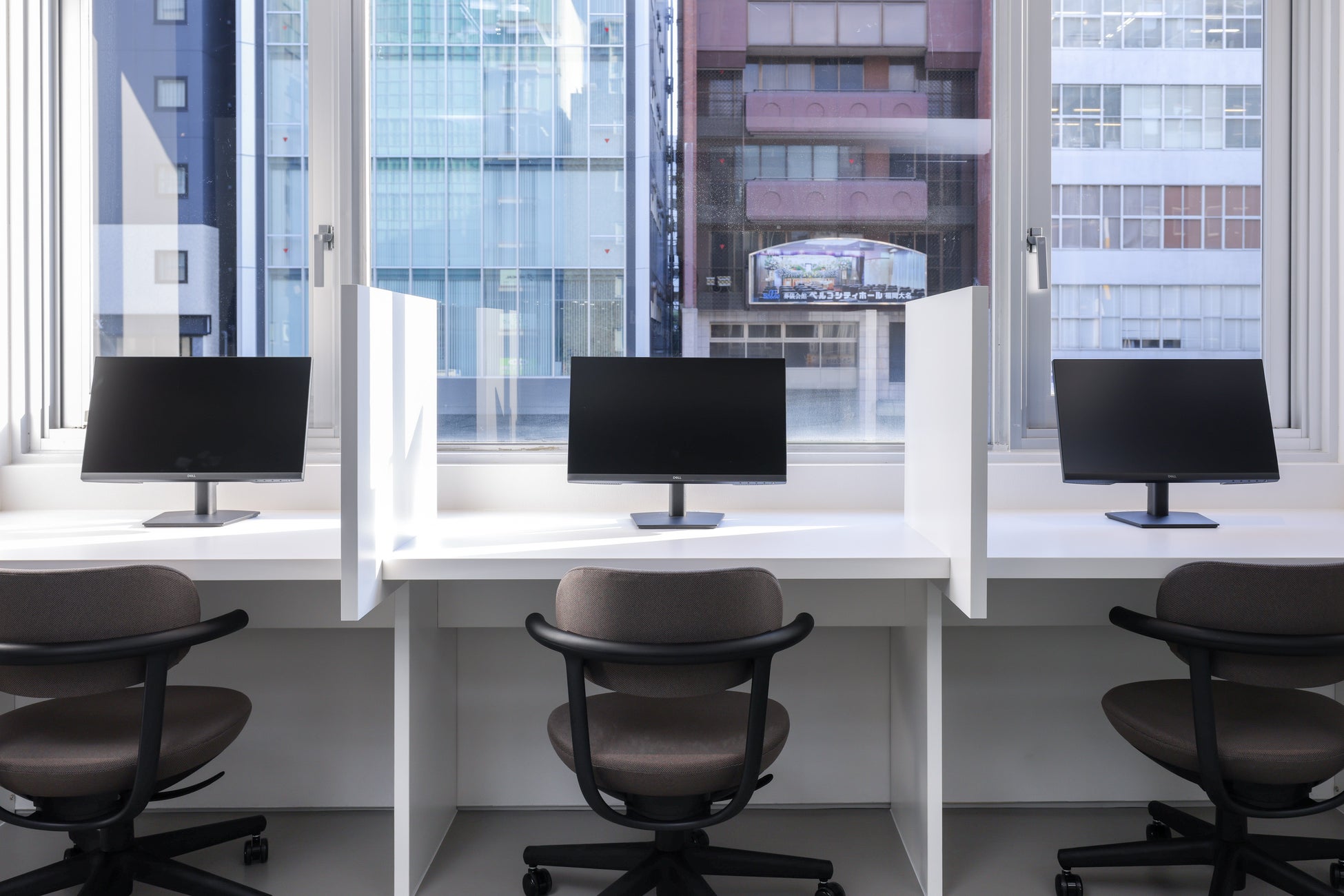 各席には無料で利用できるモニターを完備。デザイン、プログラミング、資料作成など、デュアルディスプレイを必要とする作業に最適です。また、電源も設置されているため、複数デバイスを使うワークスタイルにも対応できます。