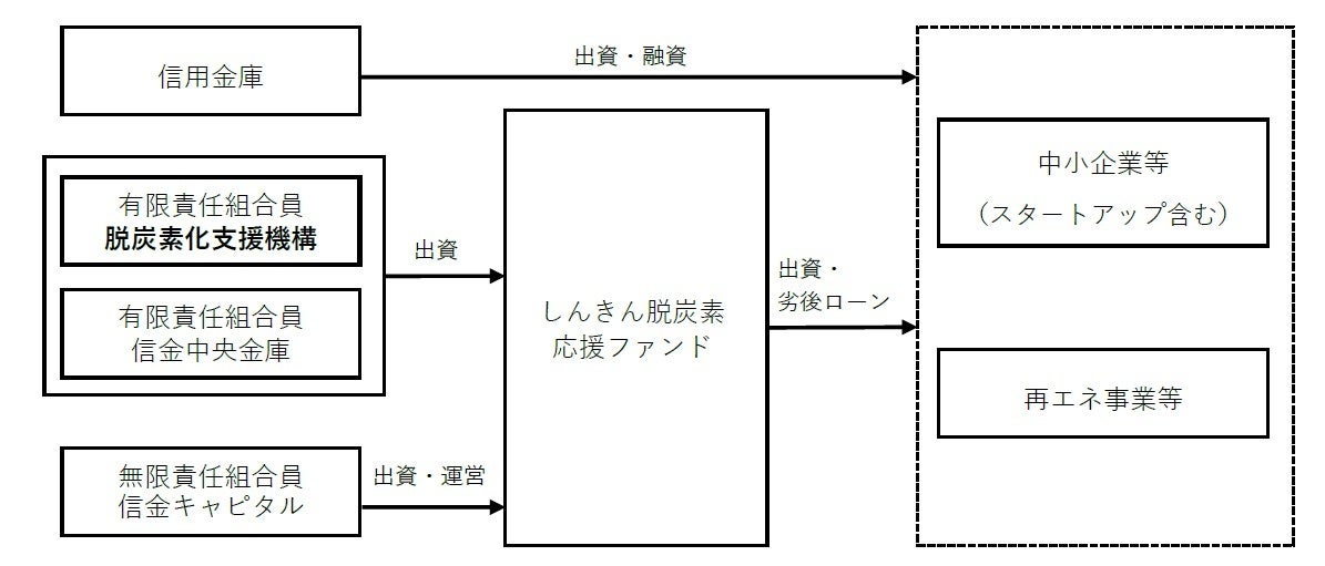 株式会社脱炭素化支援機構(代表取締役社長:田吉禎彦、英語名称:Japan Green Investment Corp. for Carbon Neutrality(JICN))は、信金中央金庫(本店:東京都中央区、理事長:柴田弘之)及び信金キャピタル株式会社(本社:東京都中央区、代表取締役社長:鈴木 存)と連携して設立した投資事業有限責任組合しんきん脱炭素応援ファンド(以下、「本ファンド」)に対して出資することを決定いたしました。