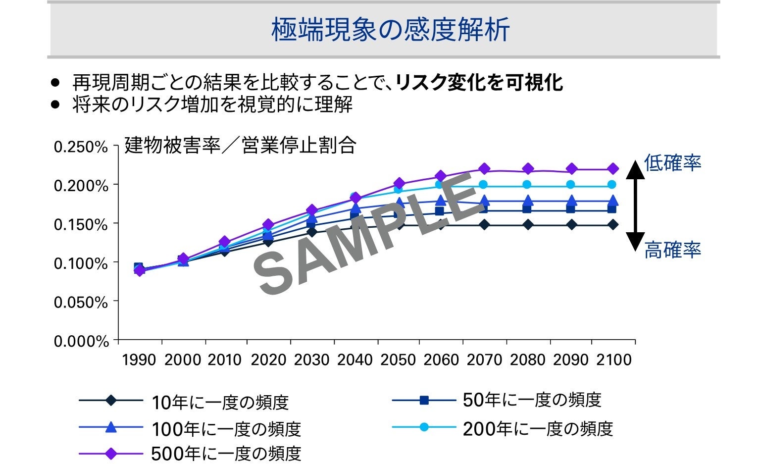 最新の気候予測シミュレーションを活用した独自モデルを開発し、リスク変化と財務影響を算定