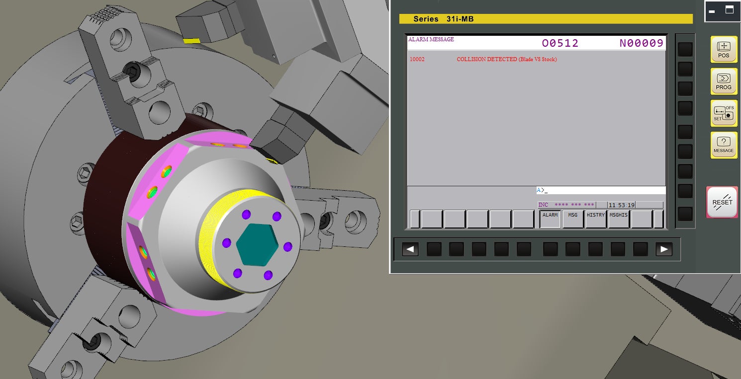 シミュレータに内蔵されたスマートアラーム機能により、オーバートラベルや工具とワークの衝突など、操作ミス時の具体的な問題点を明確に把握することができ、ミスの早期発見と修正を支援することで、学習効率と操作スキルの向上を実現します。