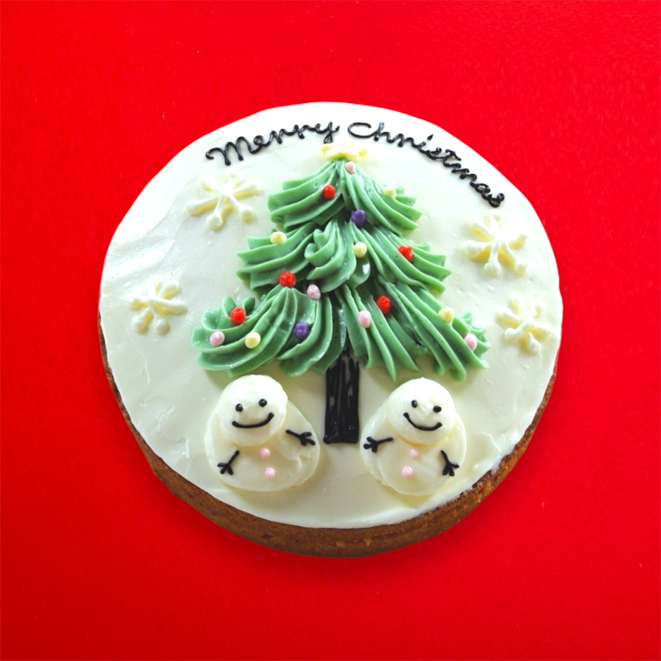 国産小麦のしっとりとしたバターケーキにベリーのコンフィチュールとバタークリームをサンドし、クリスマスツリーと当店で人気のとけちゃった雪だるまをデコレーションしました。