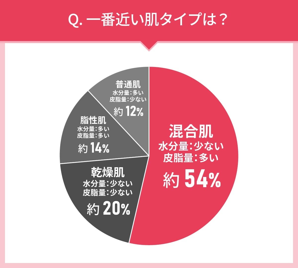 今回は混合肌(水分量少ない/皮脂量多い)が一番多い結果となりました。