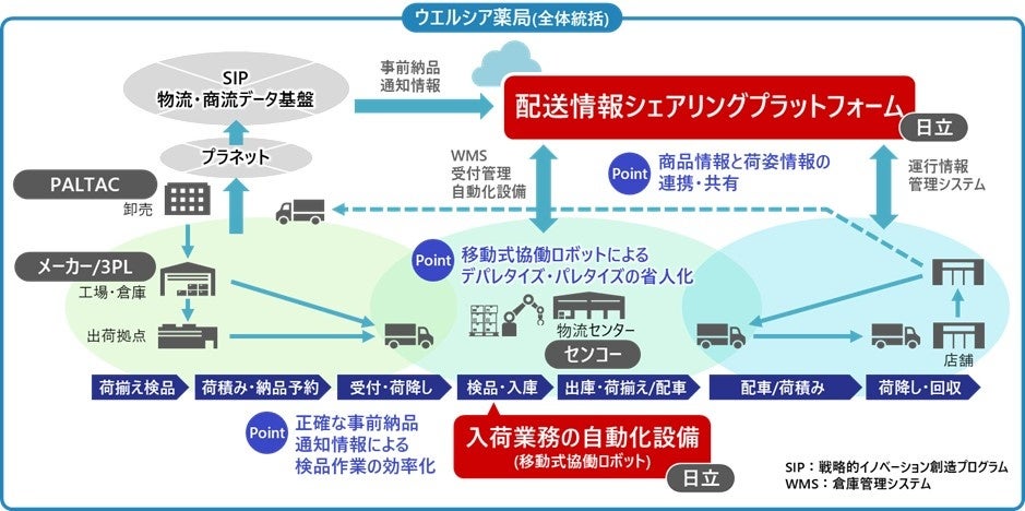 ウエルシア薬局が、PALTAC・センコー・日立・メーカーと共同でサプライチェーン全体の配送効率向上とエネルギー消費削減に向けて情報連携基盤と入荷自動化設備を導入